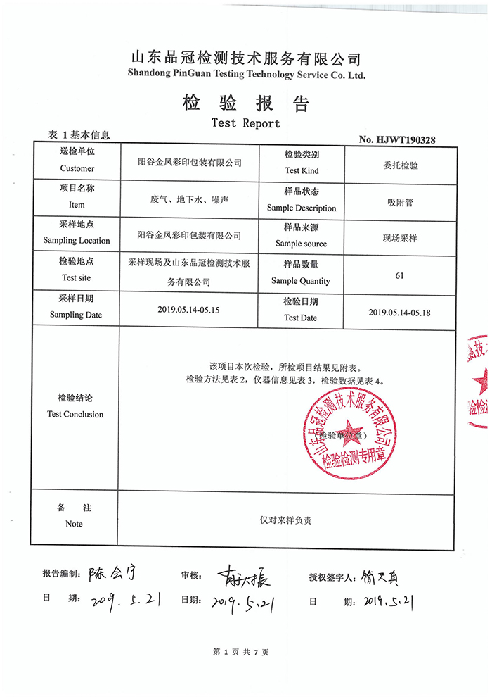 山东凤祥实业有限公司第二季度环境监测报告信息公示